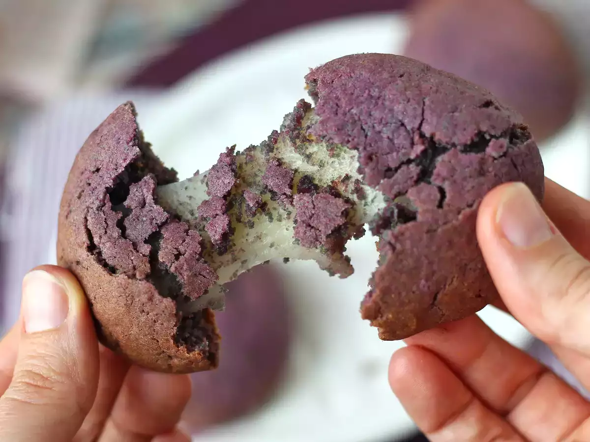 Тези бисквитки мочи с убе са перфектното съчетание на две текстури, които обичаме: меката бисквитка отвън и еластичното, топящо се сърце на мочи отвътре. Когато се сготви, бисквитката остава мека, а центърът става леко дъвчащ, почти пристрастяващ. Мочи с красивия си лилав цвят и сладък, леко ванилов вкус добавя оригинален щрих, който променя класическите бисквити. А ако добавите парченца бял шоколад, контрастът става още по-вкусен ;)